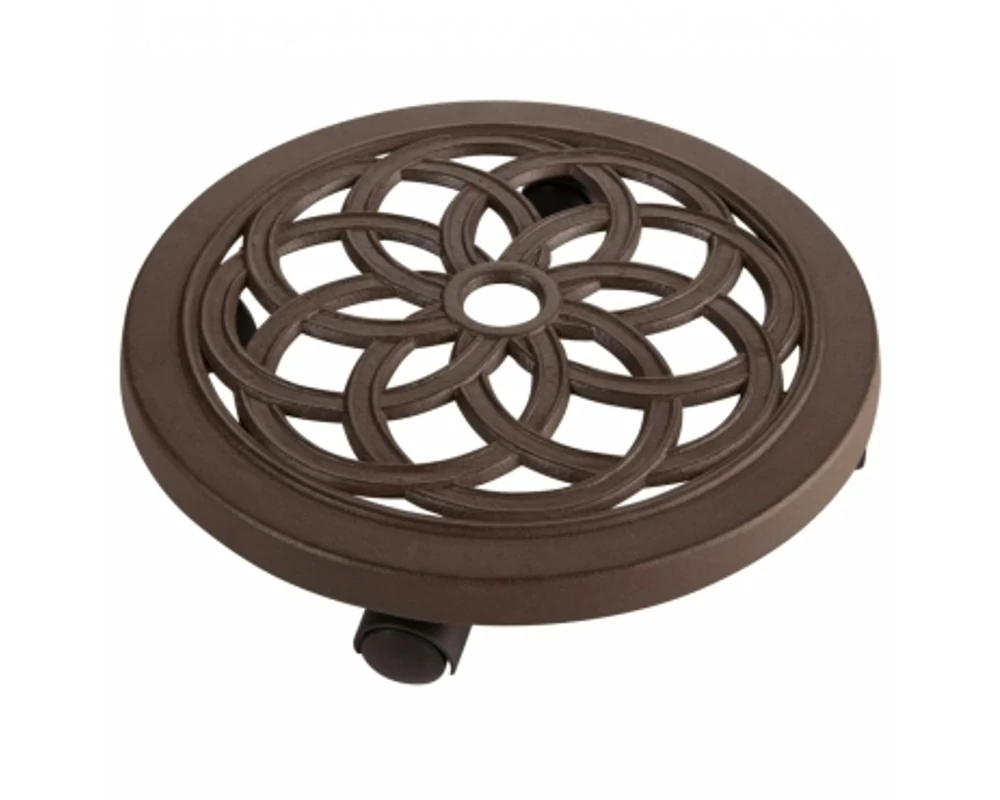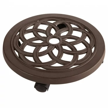 Rozsdamentes, gurulós virágalátét fékekkel. Öntött alumínium. Terhelhetőség: 120 kg, 30 cm átmérőjű cserepet lehet ráhelyezni.
