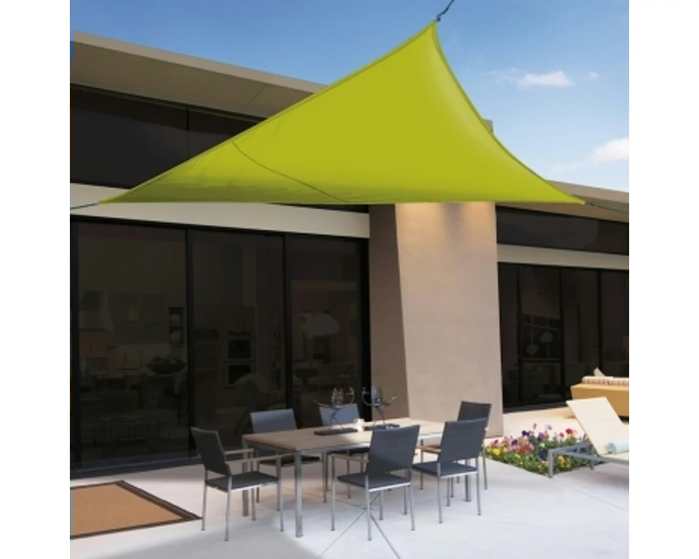 Kiváló minőségű, UV sugárzásnak ellenálló HDPE műanyagból készült, háromszög alakú napvitorla zöld színben.