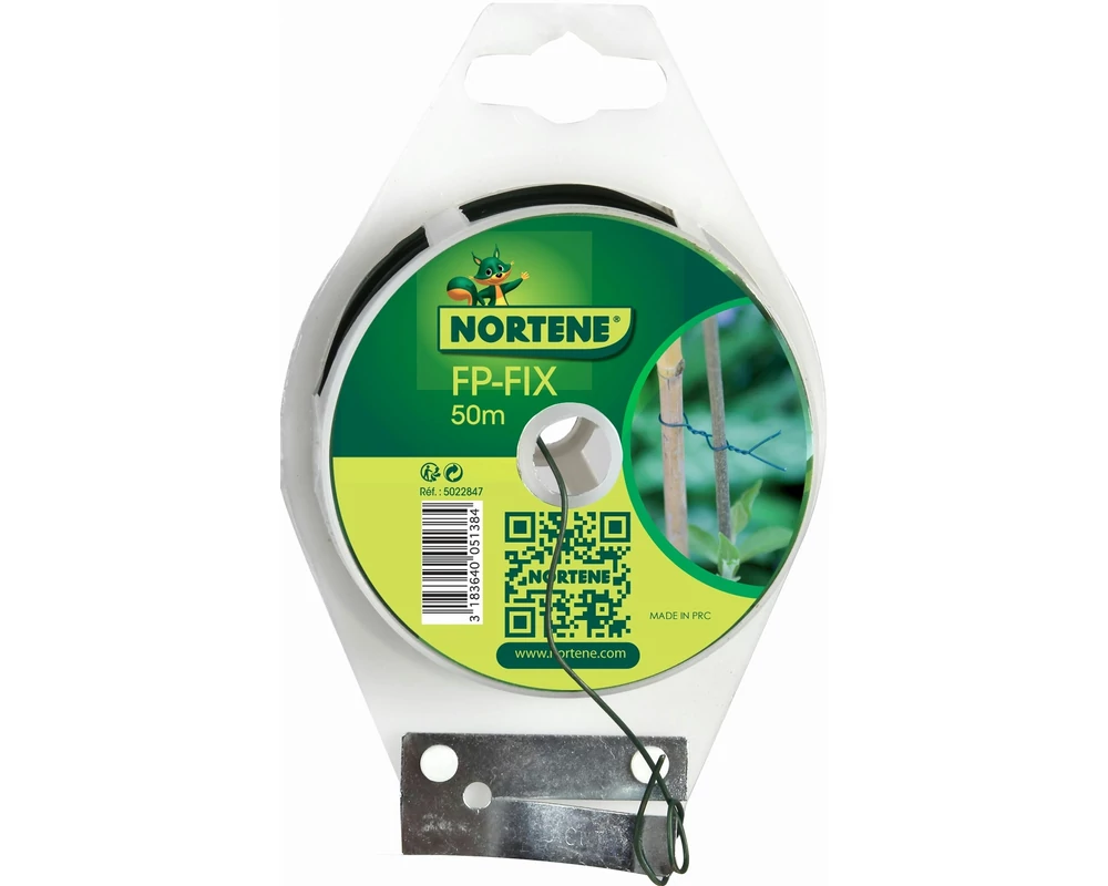 Műanyaggal bevont drótkötöző. Igazodik a növények, fák méretéhez. Könnyű vele dolgozni, mivel össze van tekercselve és vágórendszert is tartalmaz. Anyaga: Műanyaggal bevont drót. színe: zöld, 25 és 50 méteres tekercsben kapható.