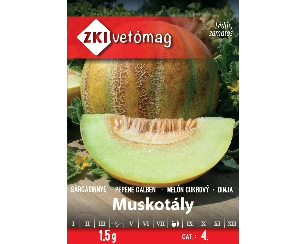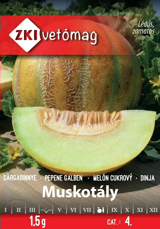 Különlegesen finom, üdítő ízű sárgadinnye. Húsa világoszöld, olvadékony, nagy cukor- tartalmú, kellemes, sajátos muskotályos zamattal. Termése enyhén lapított, sekélyen gerezdelt gömb, átlagtömege 1 kg. |