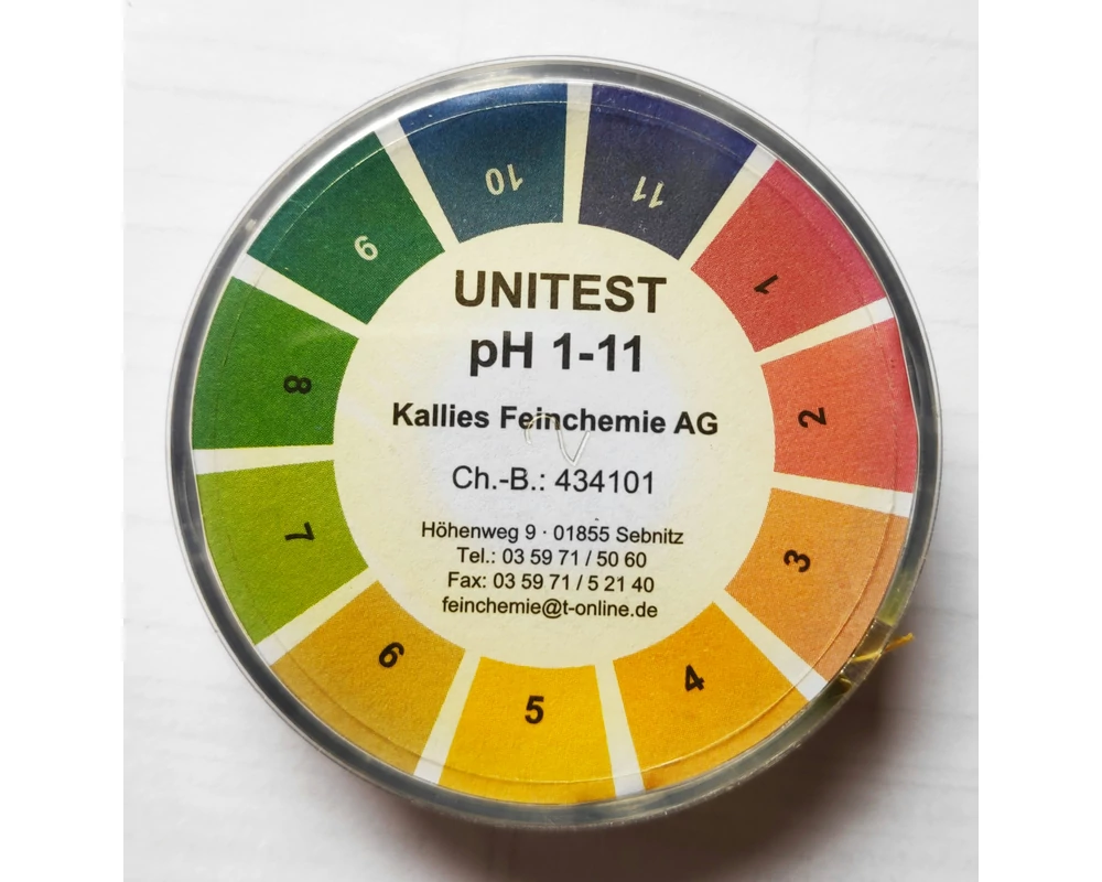 A lehető legolcsóbb választás a pH érték meghatározásához a lakmusz - más néven indikátor- papír.Univerzális pH indikátor papír műanyag adagolóban a pH méréséhez (tehát annak a megállapítására, hogy az adott folyadék savas, semleges vagy lúgos kémhatású). Az eredmény leolvasása igen egyszerű, csupán a műanyag adagolón található színskálával kell összehasonlítani a folyadékba merített papír színét. A mérés során ne az egész cefrébe vagy más folyadékba merítse bele a letépett papírdarabot, hanem egy előzőleg kivett mintába. A pH papírt tilos szembe, szájba vagy testüregbe tenni, megnyalni vagy bőrre rányomni. |